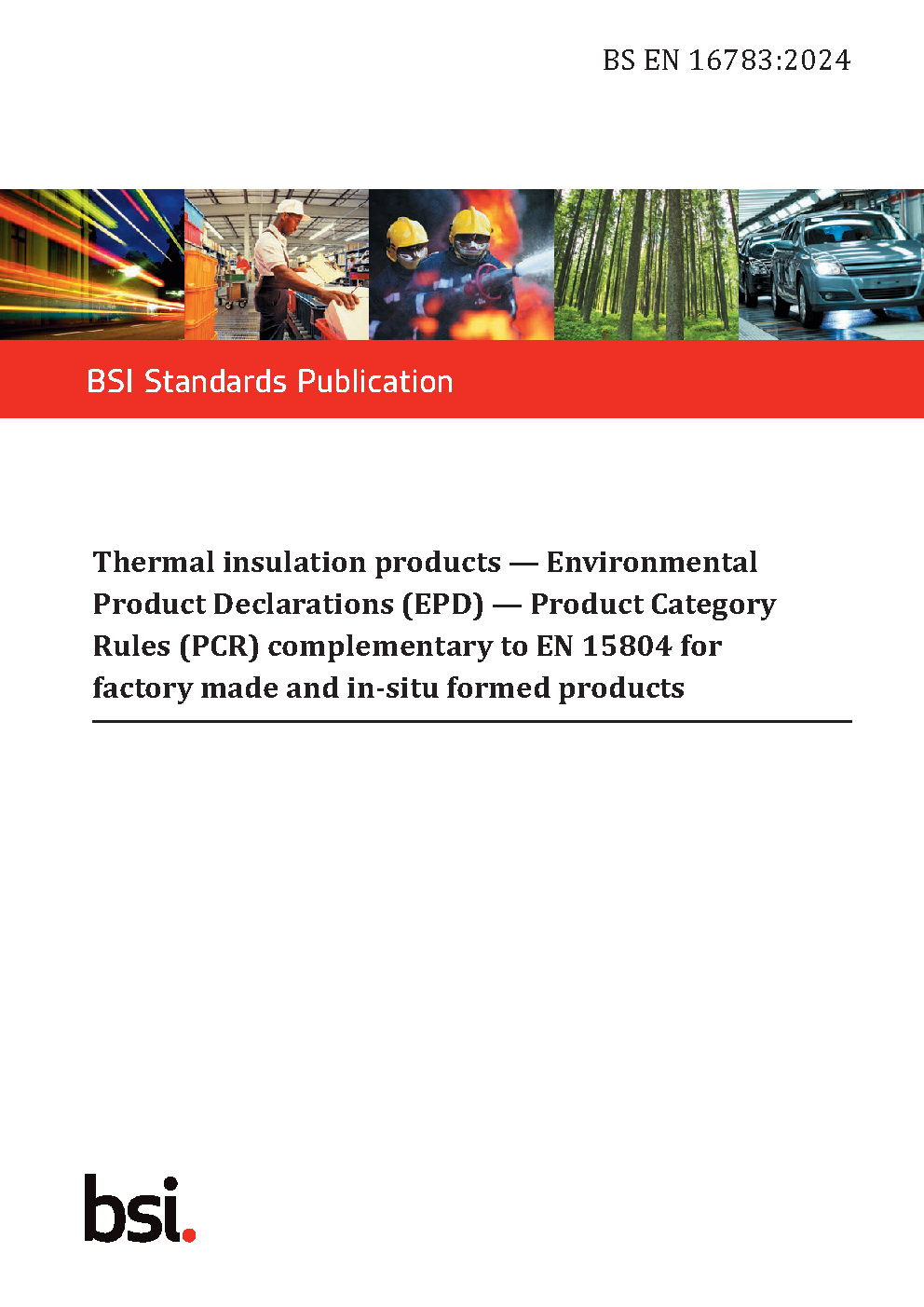 BS EN 16783. Thermal insulation products. Environmental Product Declarations (EPD). Product Category Rules (PCR) complementary to EN 15804 for factory made and in-situ formed products