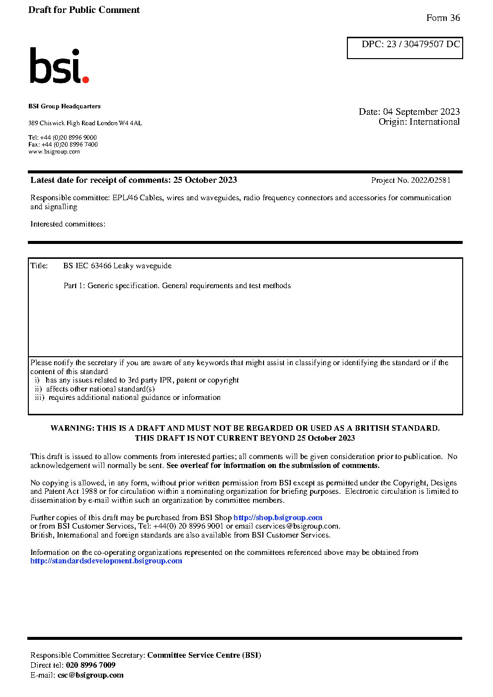 Draft standard