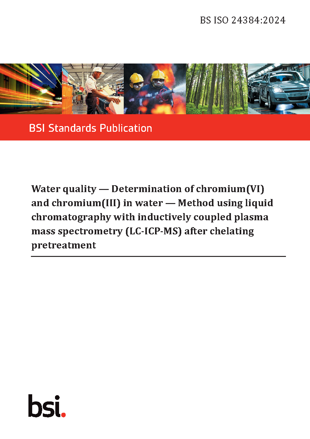 BS ISO 24384. Water quality. Determination of chromium(VI) and chromium(III) in water. Method using liquid chromatography with inductively coupled plasma mass spectrometry (LC-ICP-MS) after chelating pretreatment