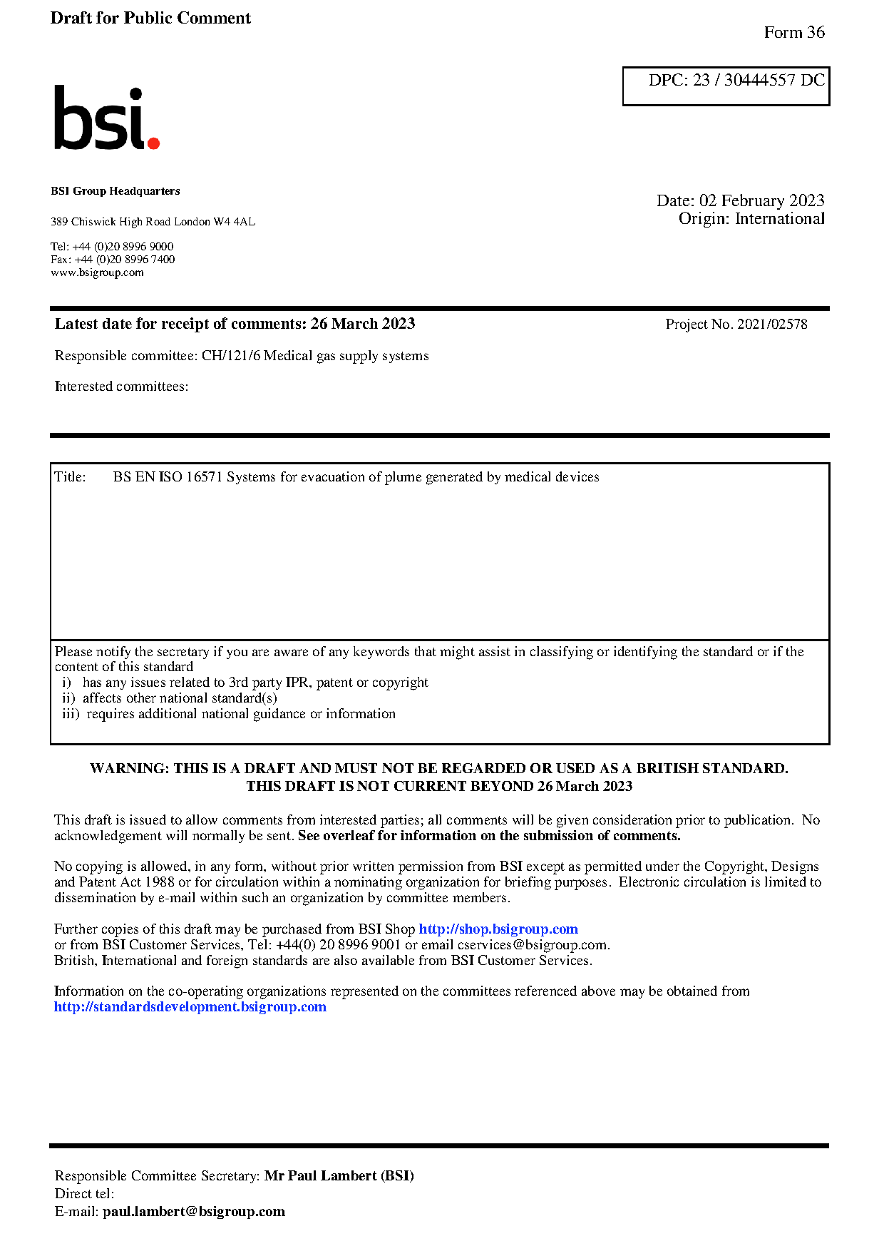BS EN ISO 16571. Systems for evacuation of plume generated by medical devices