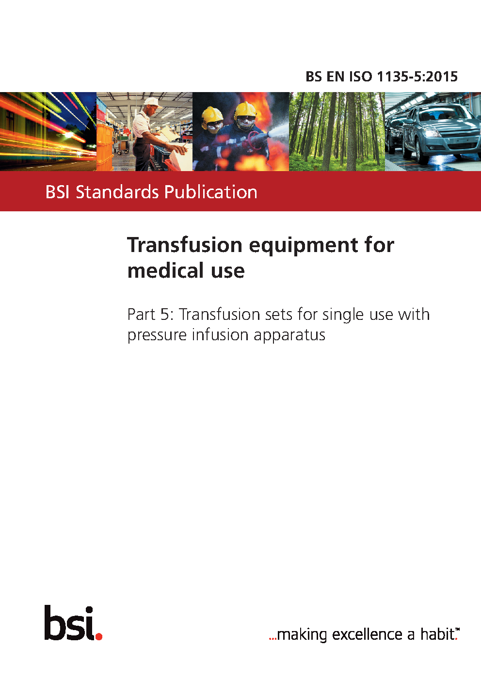 BS EN ISO 1135-5. Transfusion equipment for medical use Part 5. sets single with pressure infusion apparatus