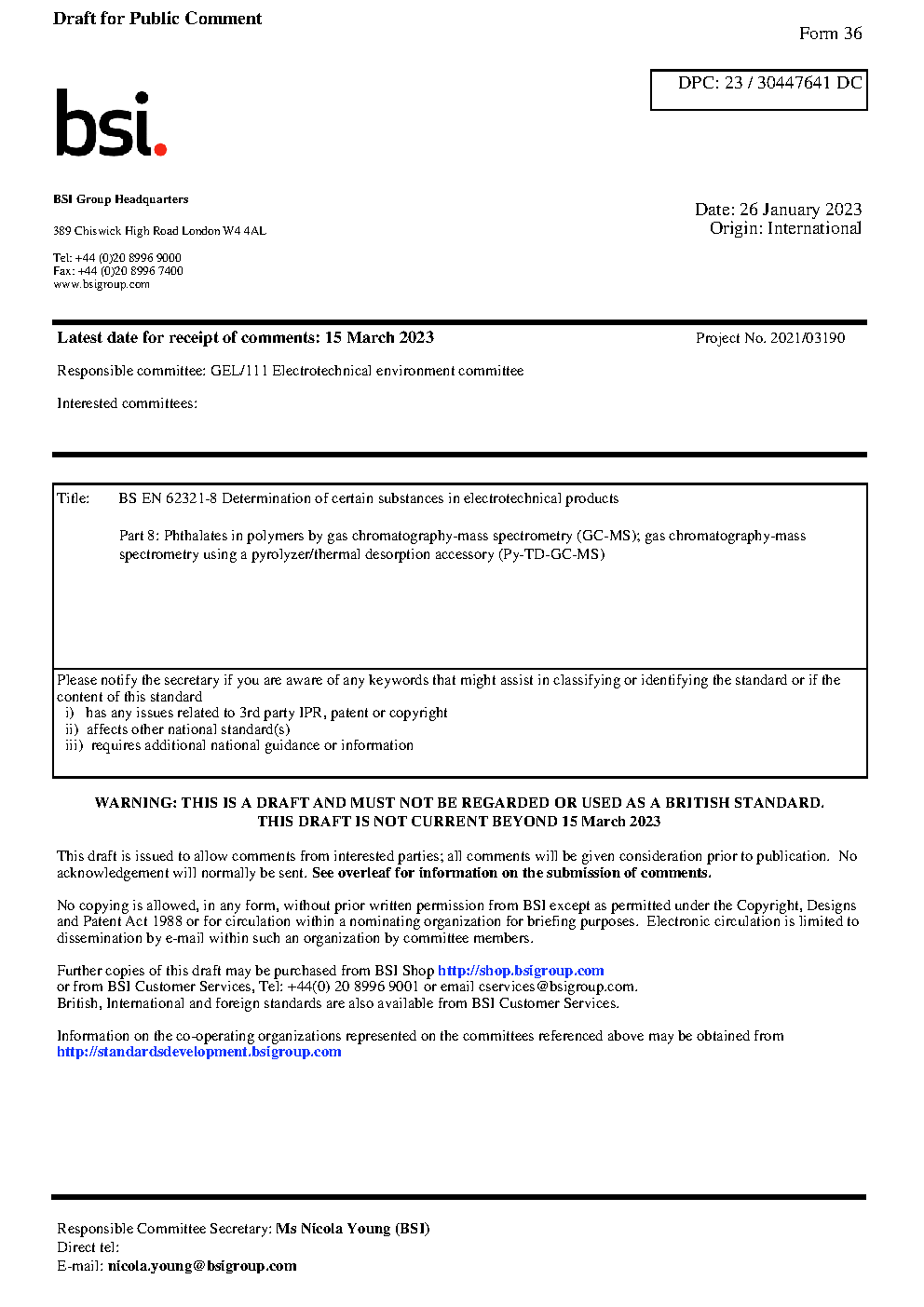 BS EN IEC 62321-8. Determination of certain substances in electrotechnical products Part 8. Phthalates polymers by gas chromatography-mass spectrometry (GC-MS), using a pyrolyzer/thermal desorption accessory (Py-TD-GC-MS)