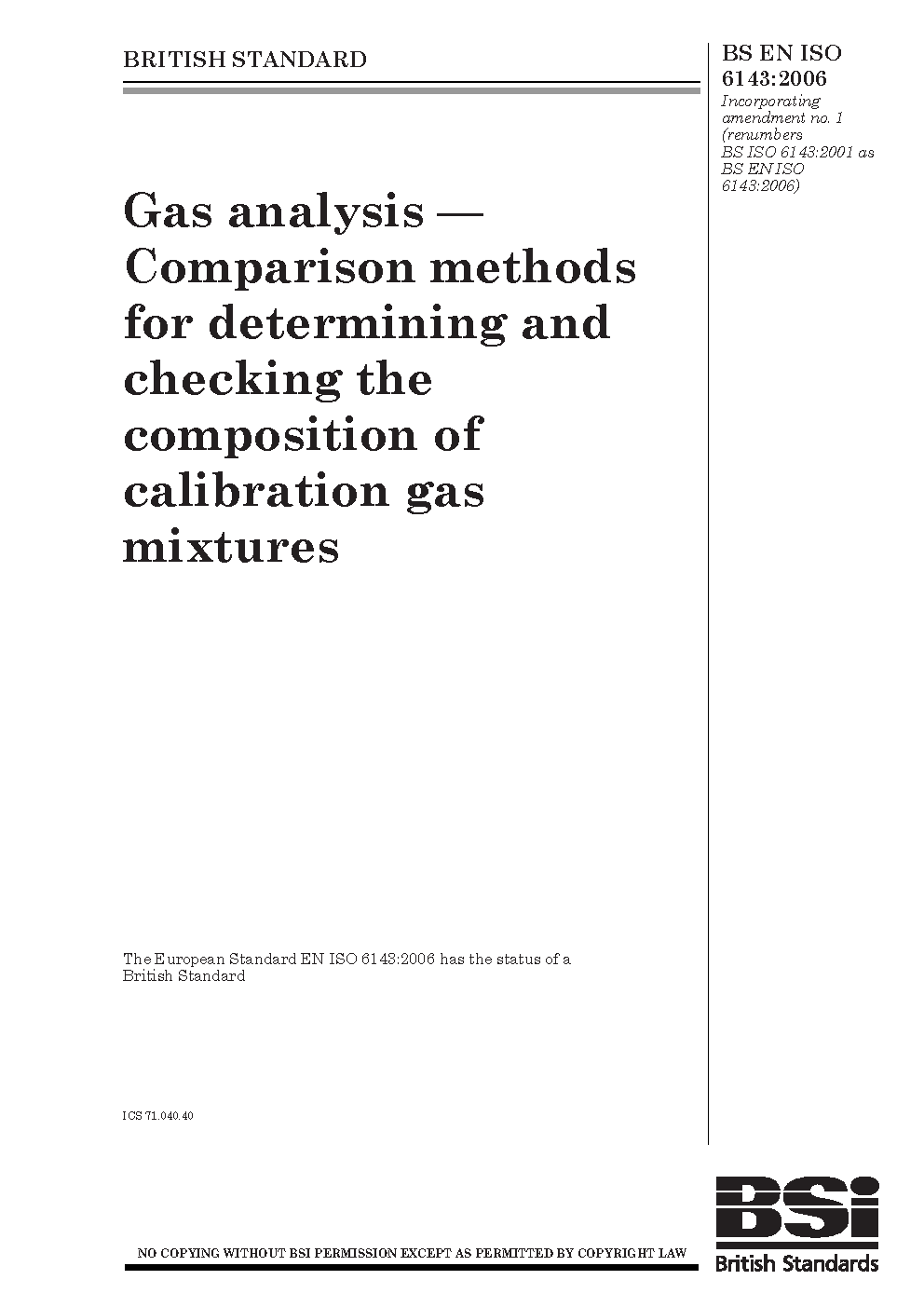 BS EN ISO 6143. Gas analysis. Comparison methods for determining and checking the composition of calibration gas mixtures