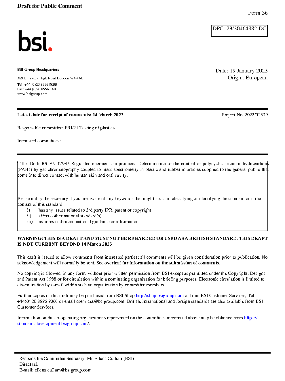BS EN 17937. Regulated chemicals in products. Determination of the content of polycyclic aromatic hydrocarbons (PAHs) by gas chromatography coupled to mass-spectrometry in plastic and rubber in articles supplied to the general public that come into direct contact with human skin and oral cavity