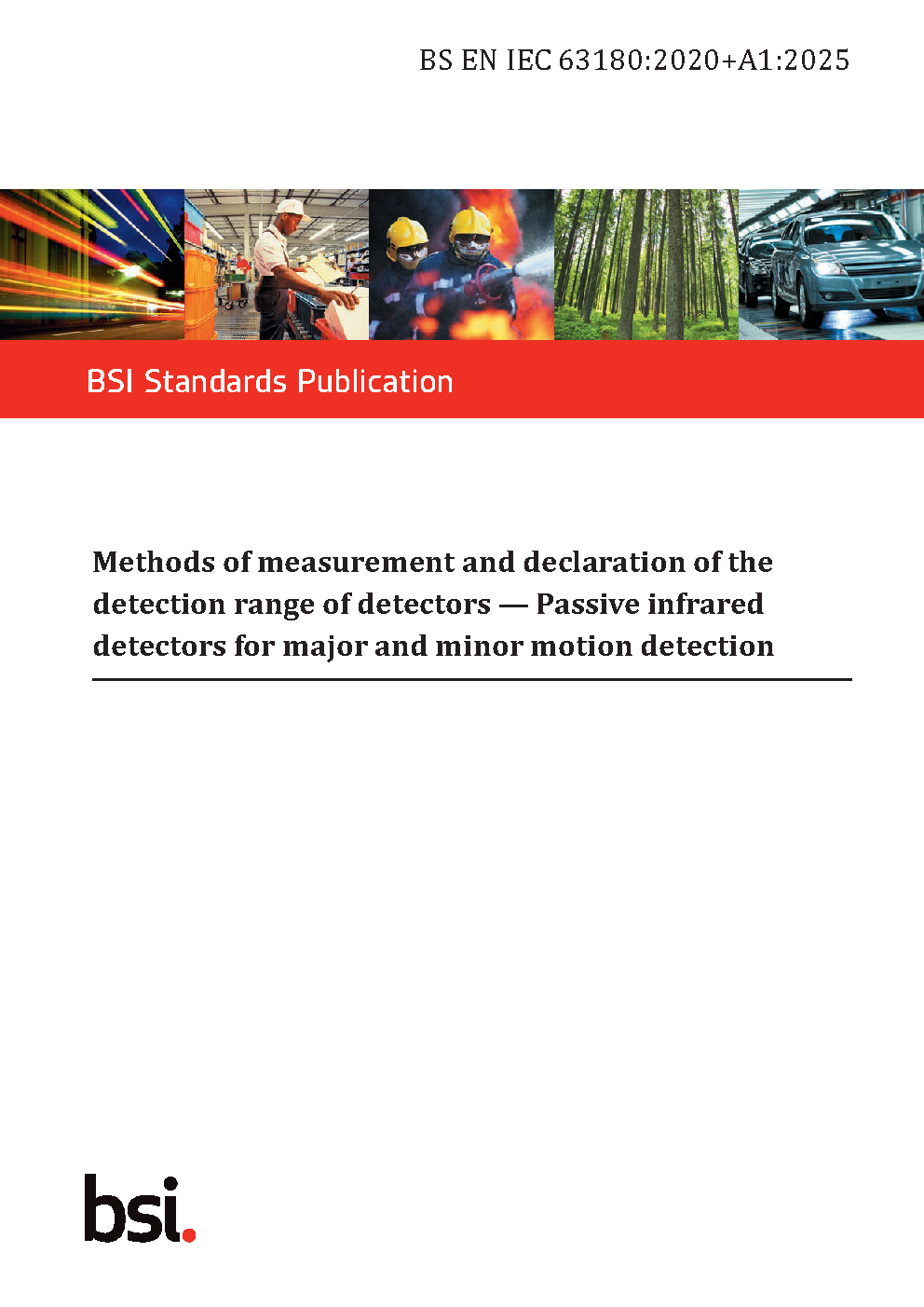 BS EN IEC 63180 AMD 1. Methods of measurement and declaration of the detection range of detectors. Passive infrared detectors for major and minor motion detection