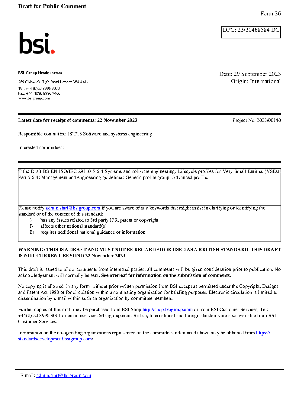 BS EN ISO/IEC 29110-5-6-4. Systems and software engineering. Lifecycle profiles for Very Small Entities (VSEs) Part 5-6-4. Management engineering guidelines. Generic profile group. Advanced