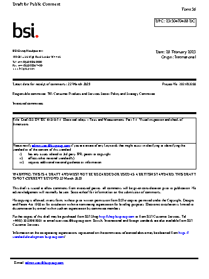 BS EN IEC 61810-7-1. Electrical relays. Tests and Measurements Part 7-1. Visual inspection check of dimensions