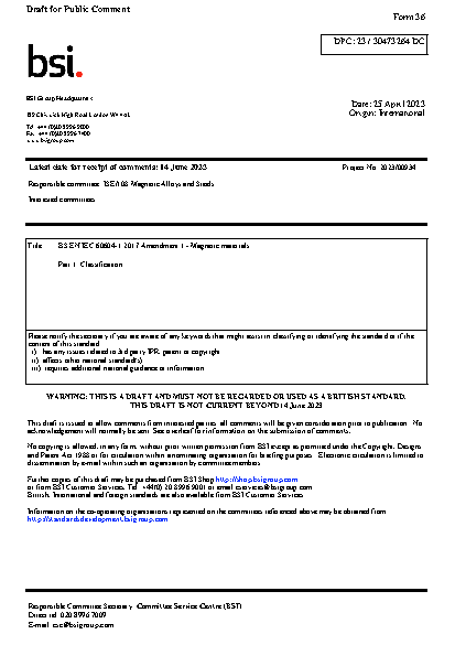 BS EN IEC 60404-1 AMD 1. Magnetic materials Part Classification