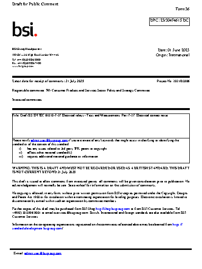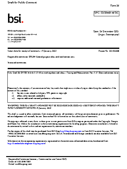 BS EN IEC 61810-7-27. Electrical relays. Tests and Measurements Part 7-27. contact noise