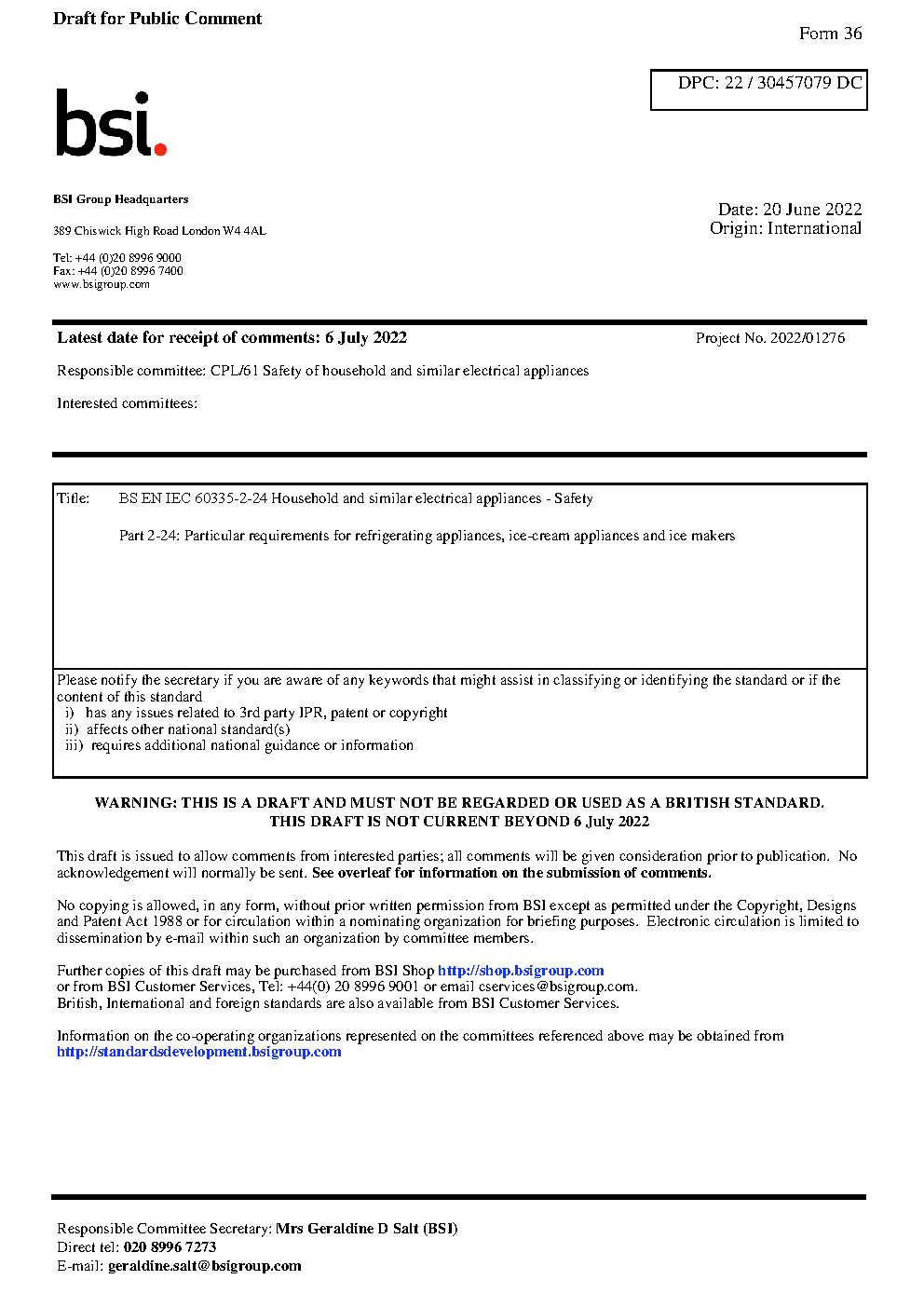 BS EN IEC 60335-2-24. Household and similar electrical appliances. Safety Part 2-24. Particular requirements for refrigerating appliances, ice-cream appliances ice makers