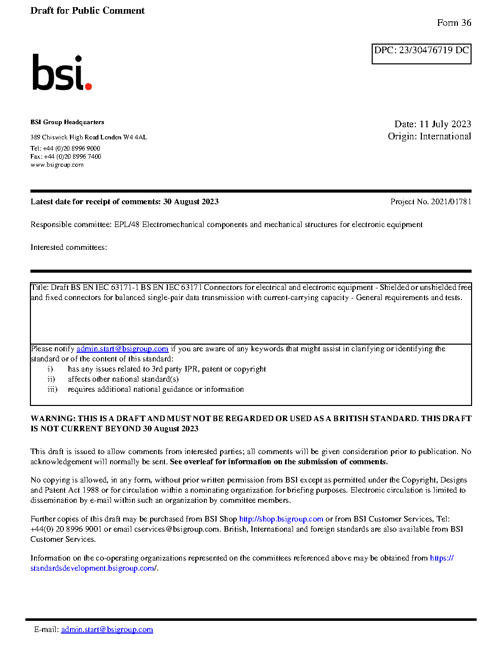 Draft standard