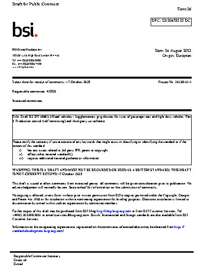 BS EN 16662-3. Road vehicles. Supplementary grip devices for tyres of passenger cars and light duty vehicles Part 3. Production control (self monitoring) third-party surveillance