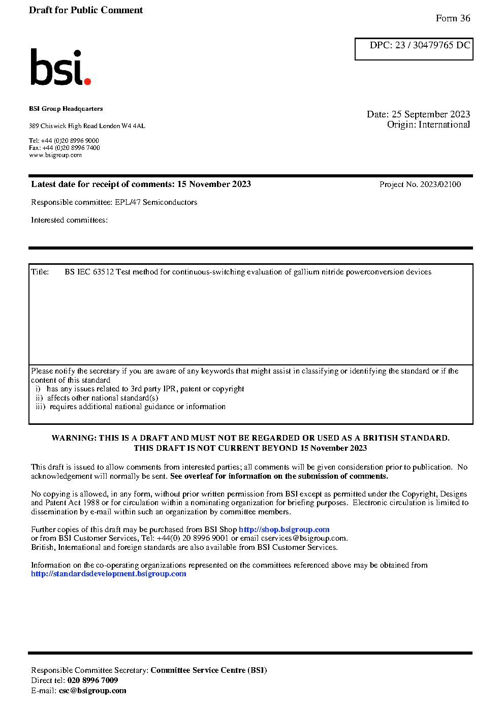 BS IEC 63512. Test method for continuous-switching evaluation of gallium nitride power conversion devices