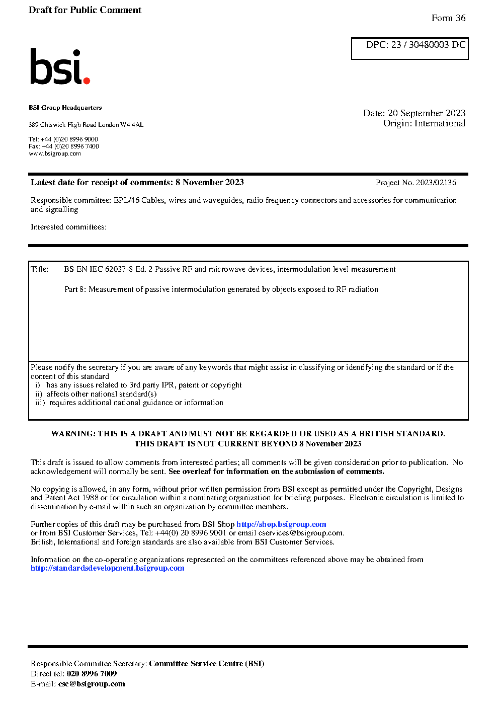 Draft standard