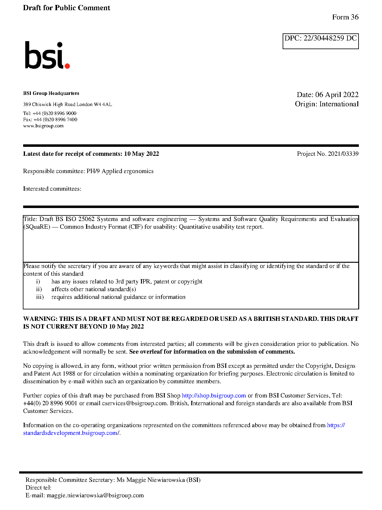 Draft standard