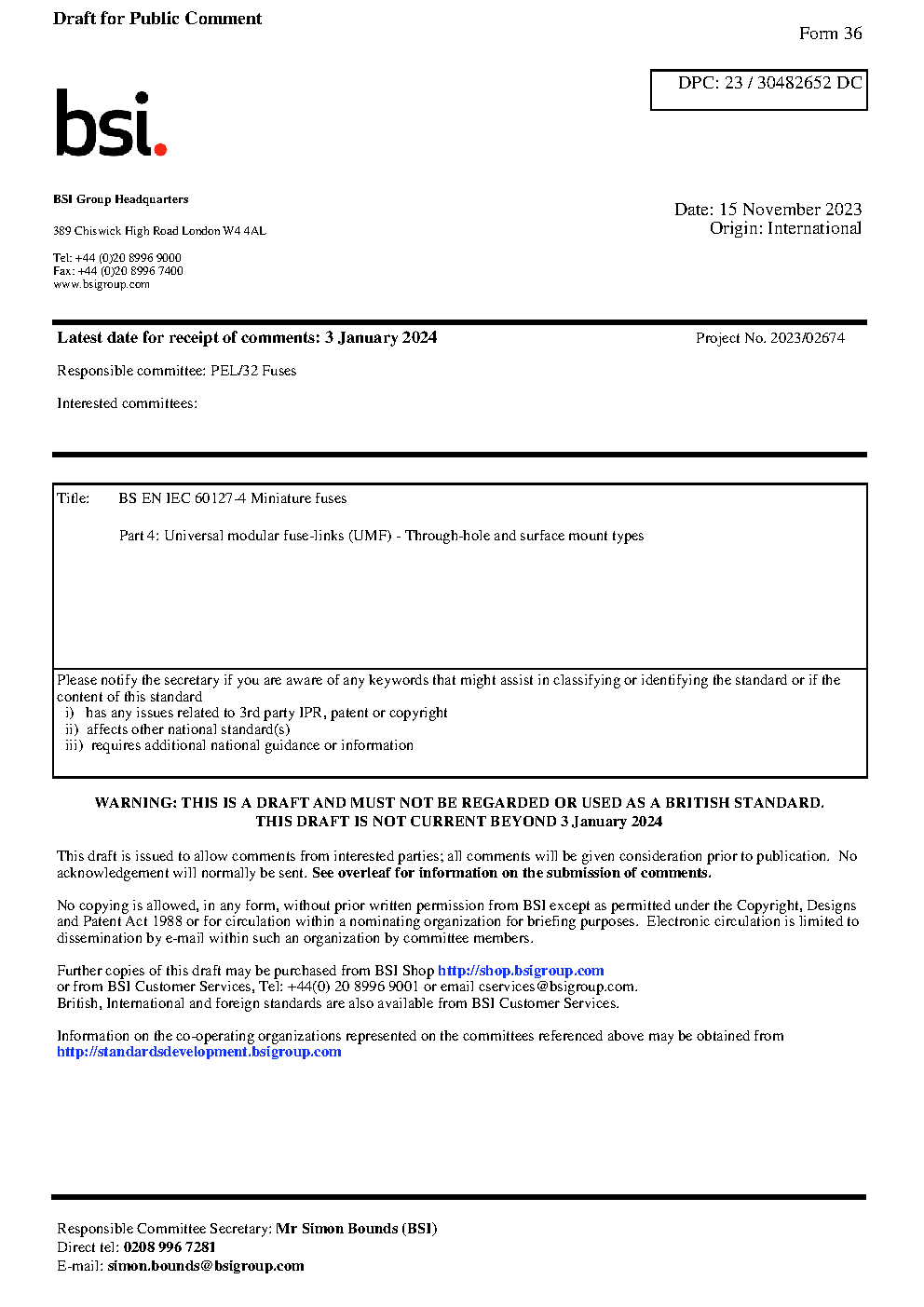 BS EN IEC 60127-4. Miniature fuses Part 4. Universal modular fuse-links (UMF). Through-hole and surface mount types