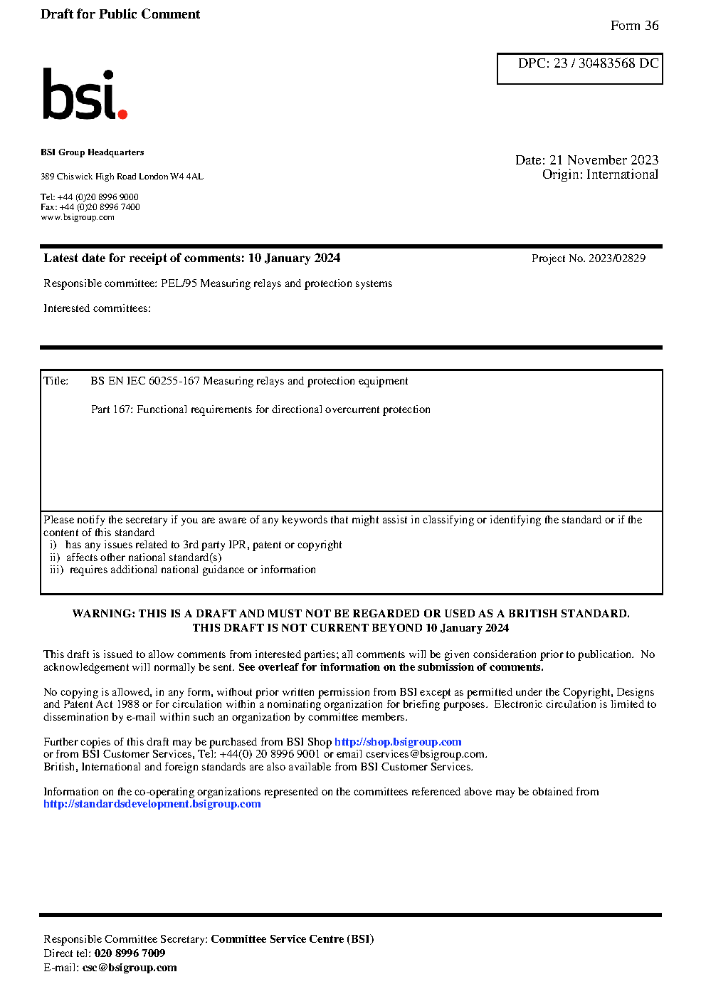 BS EN IEC 60255-167 Measuring relays and protection equipment Part 167. Functional requirements for directional overcurrent