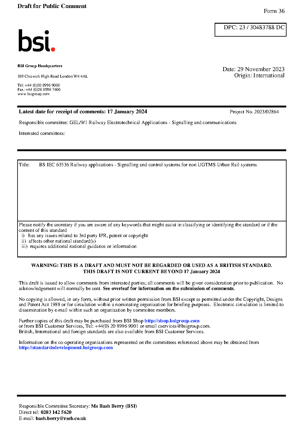 BS IEC 63536 Railway applications - Signalling and control systems for non UGTMS Urban Rail systems