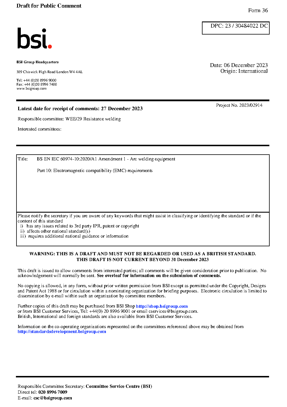 Draft standard