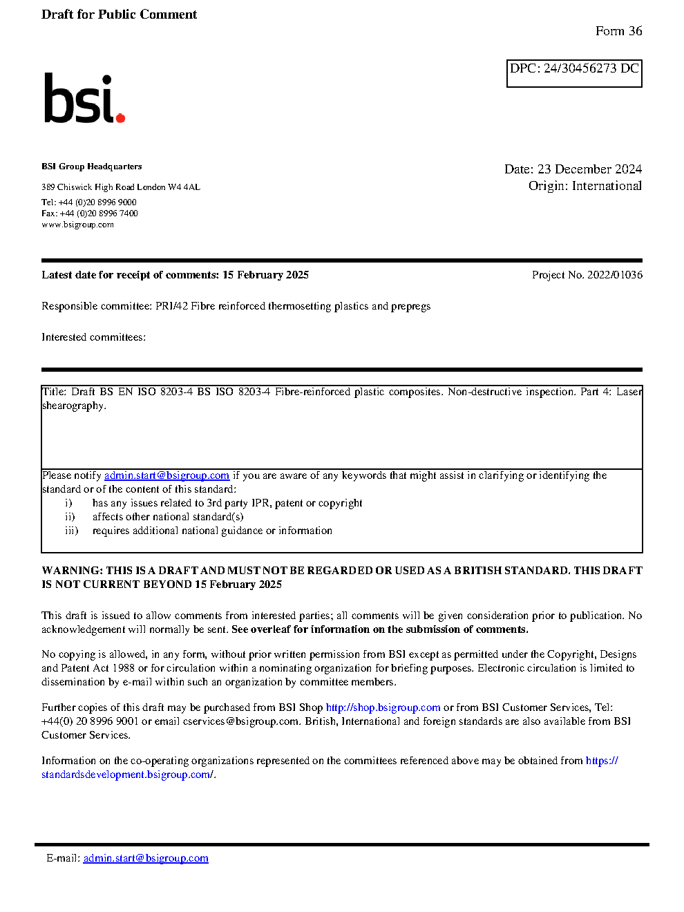 BS ISO 8203-4 Fibre-reinforced plastic composites. Non-destructive inspection. Part 4: Laser shearography