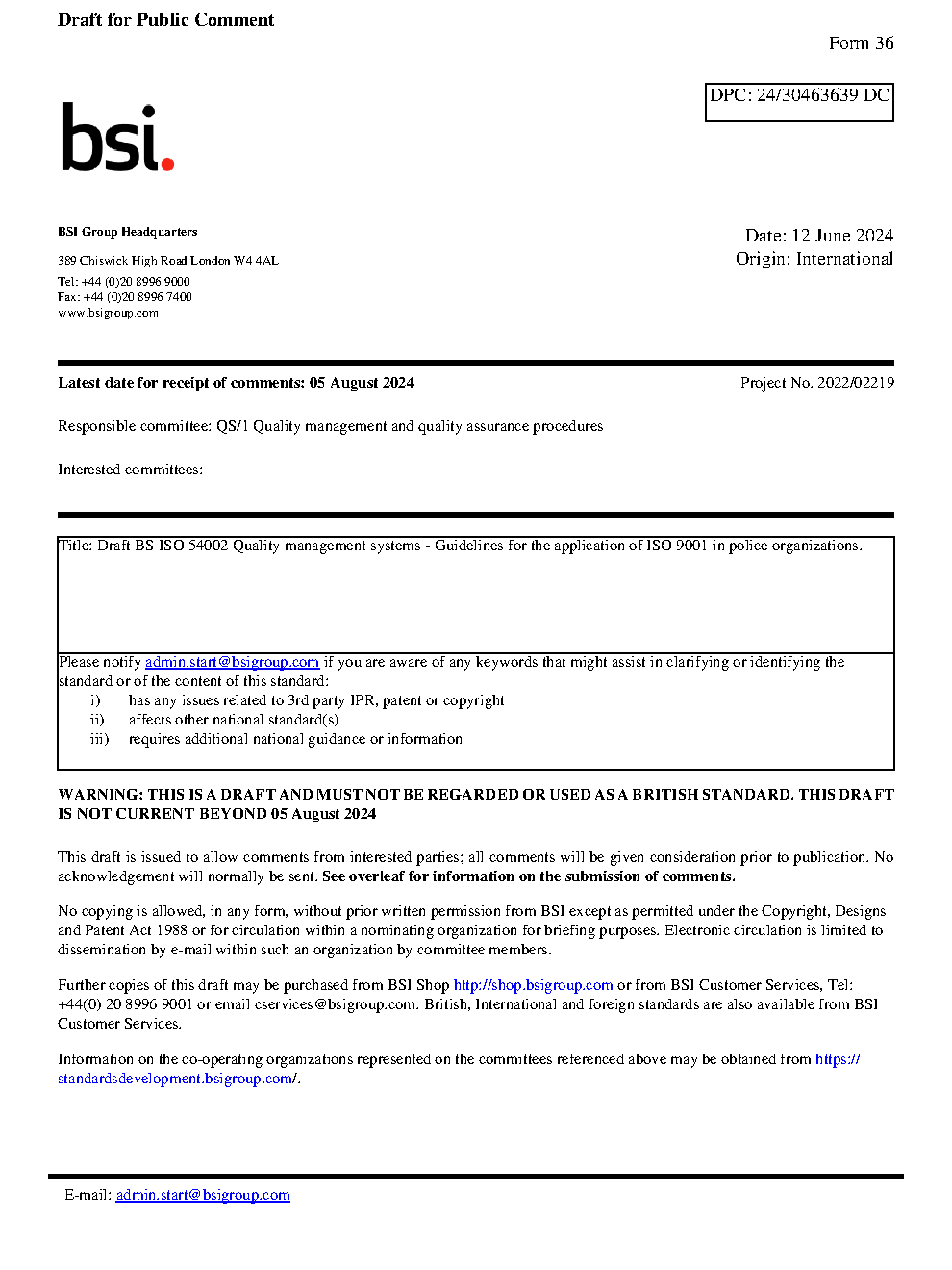 Draft standard