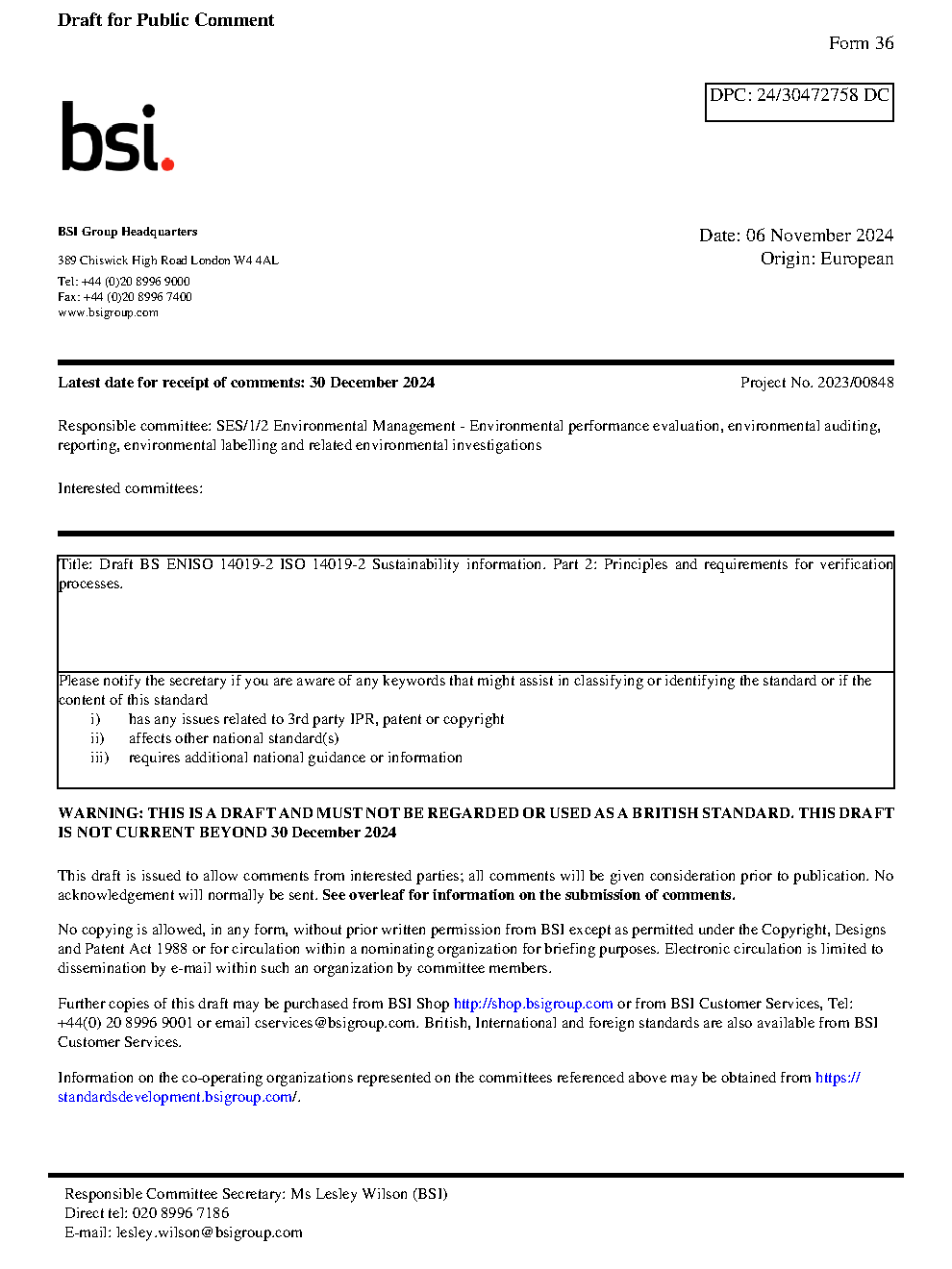 BS ISO 14019-2 Sustainability information. Part 2: Principles and requirements for verification processes