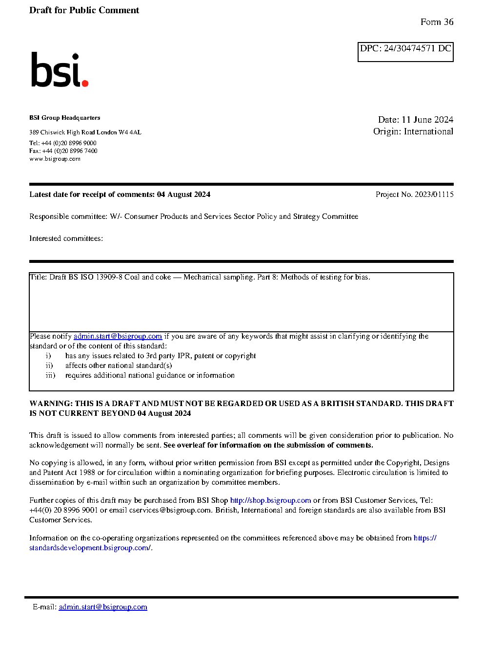 BS ISO 13909-8 Coal and coke — Mechanical sampling Part 8: Methods of testing for bias