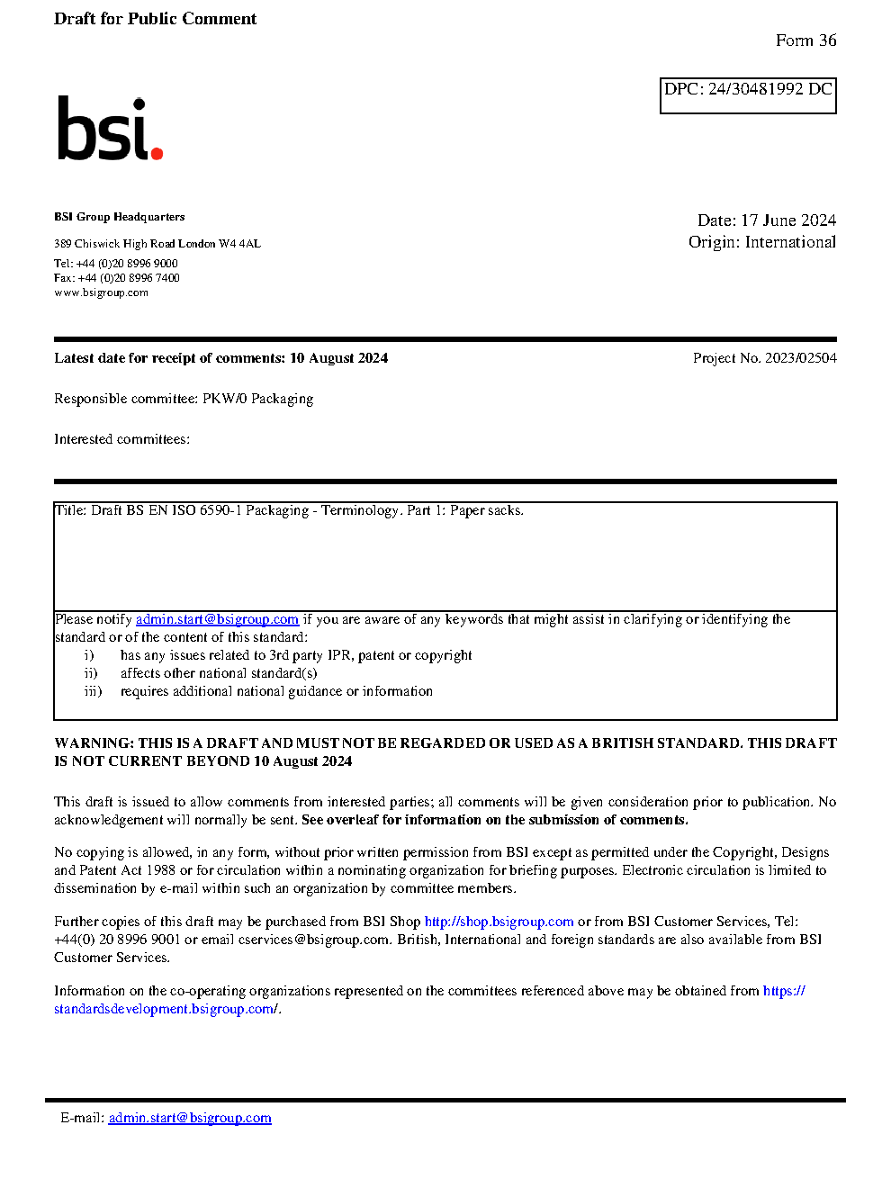 Draft standard