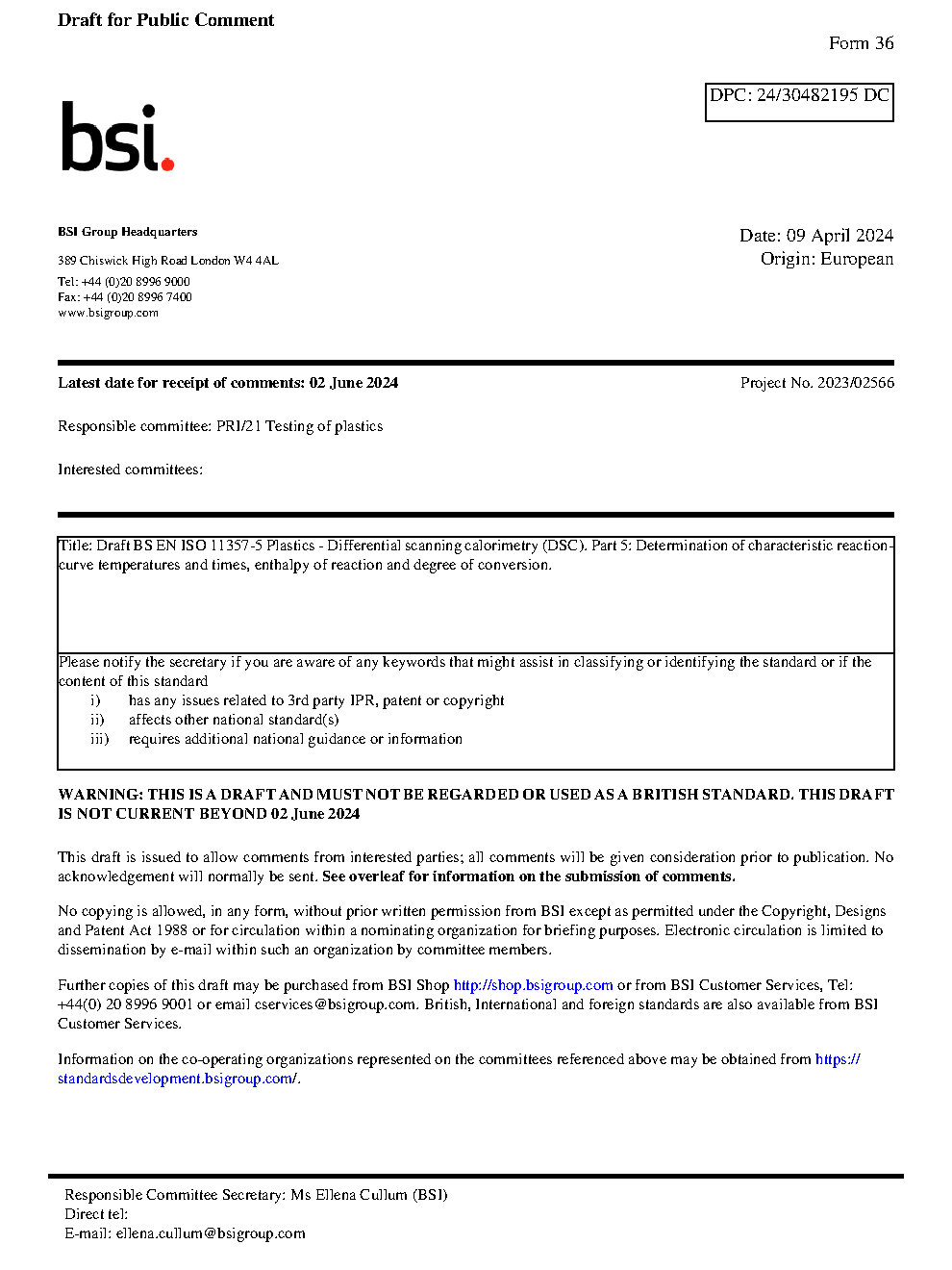BS EN ISO 11357-5 Plastics - Differential scanning calorimetry (DSC) Part 5: Determination of characteristic reaction-curve temperatures and times, enthalpy reaction degree conversion