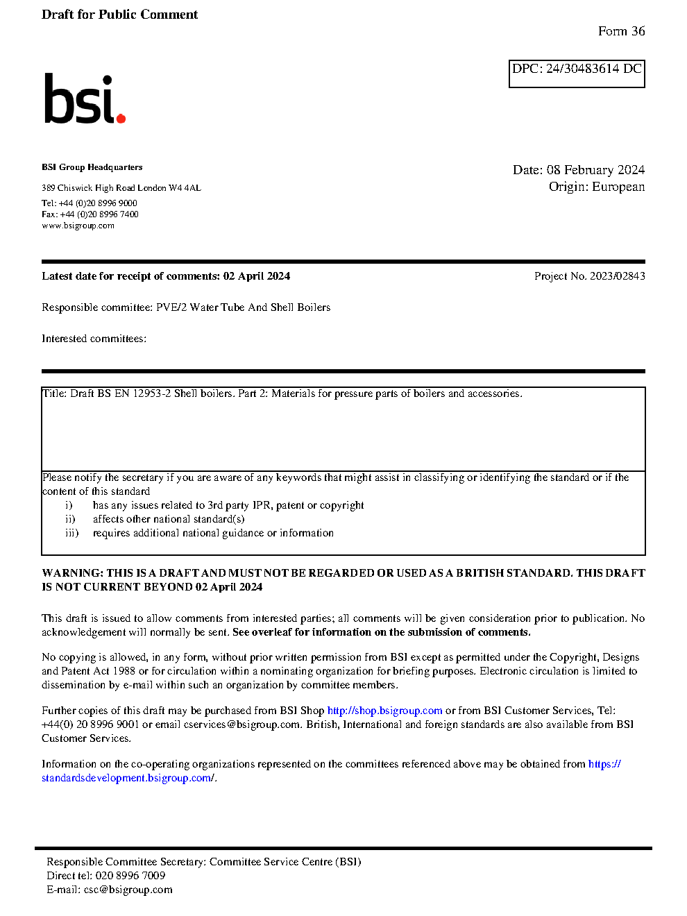 BS EN 12953-2 Shell boilers Part 2: Materials for pressure parts of and accessories