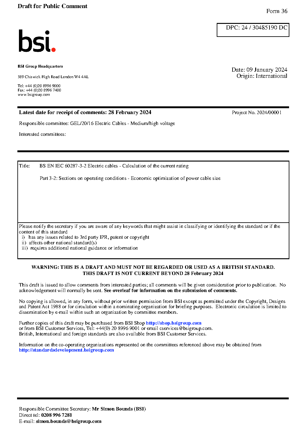 BS EN IEC 60287-3-2. Electric cables. Calculation of the current rating Part 3-2. Sections on operating conditions. Economic optimization power cable size