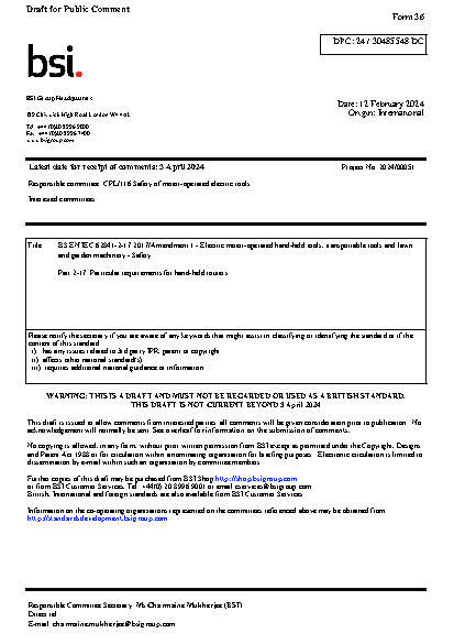 BS EN IEC 62841-2-17:2017/A1 Amendment 1 - Electric motor-operated hand-held tools, transportable tools and lawn garden machinery Safety Part 2-17: Particular requirements for routers