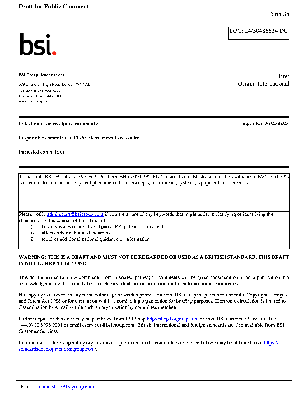 BS IEC 60050-395 International Electrotechnical Vocabulary (IEV) Part 395. Nuclear instrumentation. Physical phenomena, basic concepts, instruments, systems, equipment and detectors