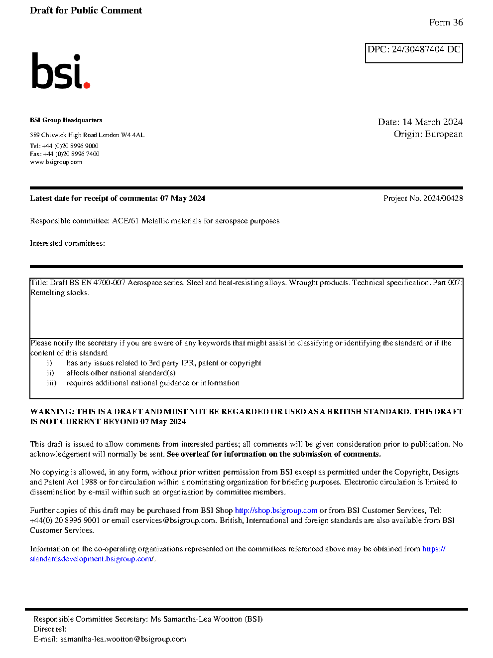 BS EN 4700-007 Aerospace series. Steel and heat-resisting alloys. Wrought products. Technical specification Part 007: Remelting stocks