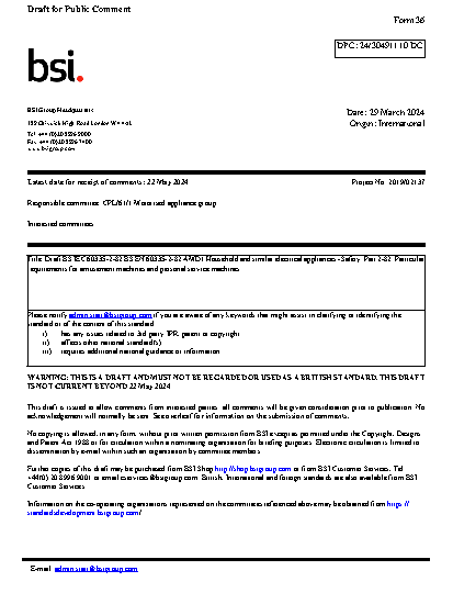 BS EN 60335-2-82 AMD1 Household and similar electrical appliances - Safety Part 2-82: Particular requirements for amusement machines personal service