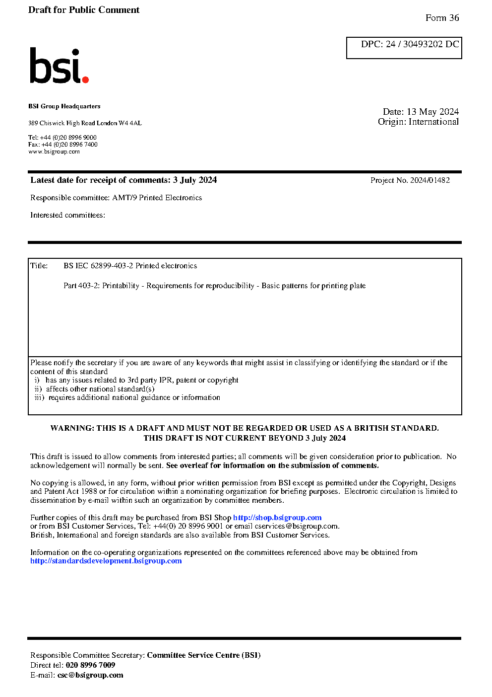BS IEC 62899-403-2 Printed electronics Part 403-2: Printability - Requirements for reproducibility Basic patterns printing plate