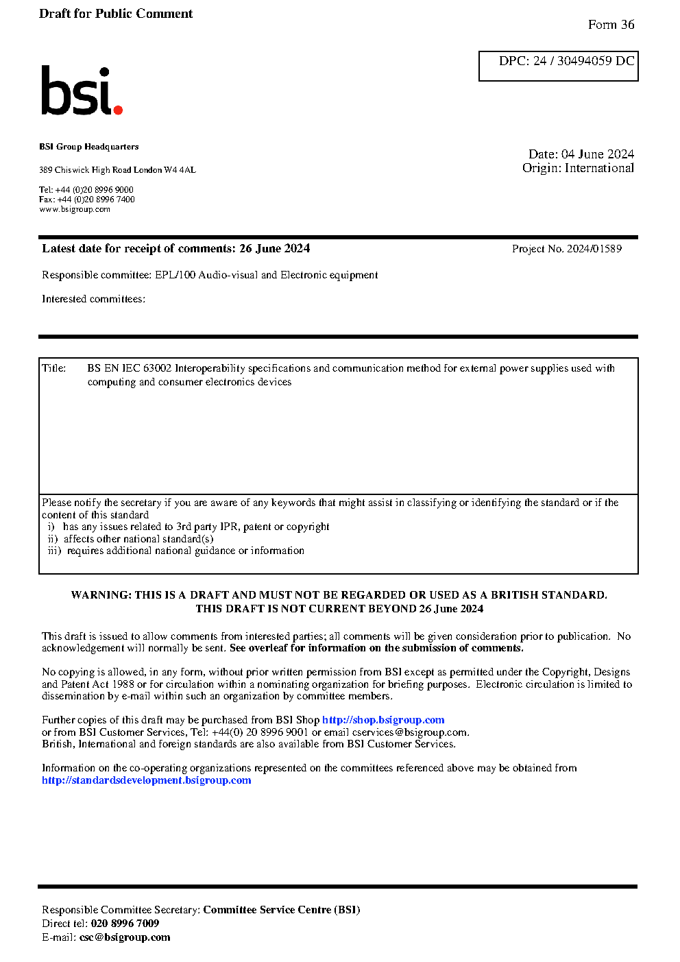 BS EN IEC 63002 Interoperability specifications and communication method for external power supplies used with computing and consumer electronics devices