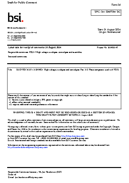 BS EN IEC 62271-215/AMD1 Amendment 1. High-voltage switchgear and controlgear Part 215. Phase comparator used with VDIS