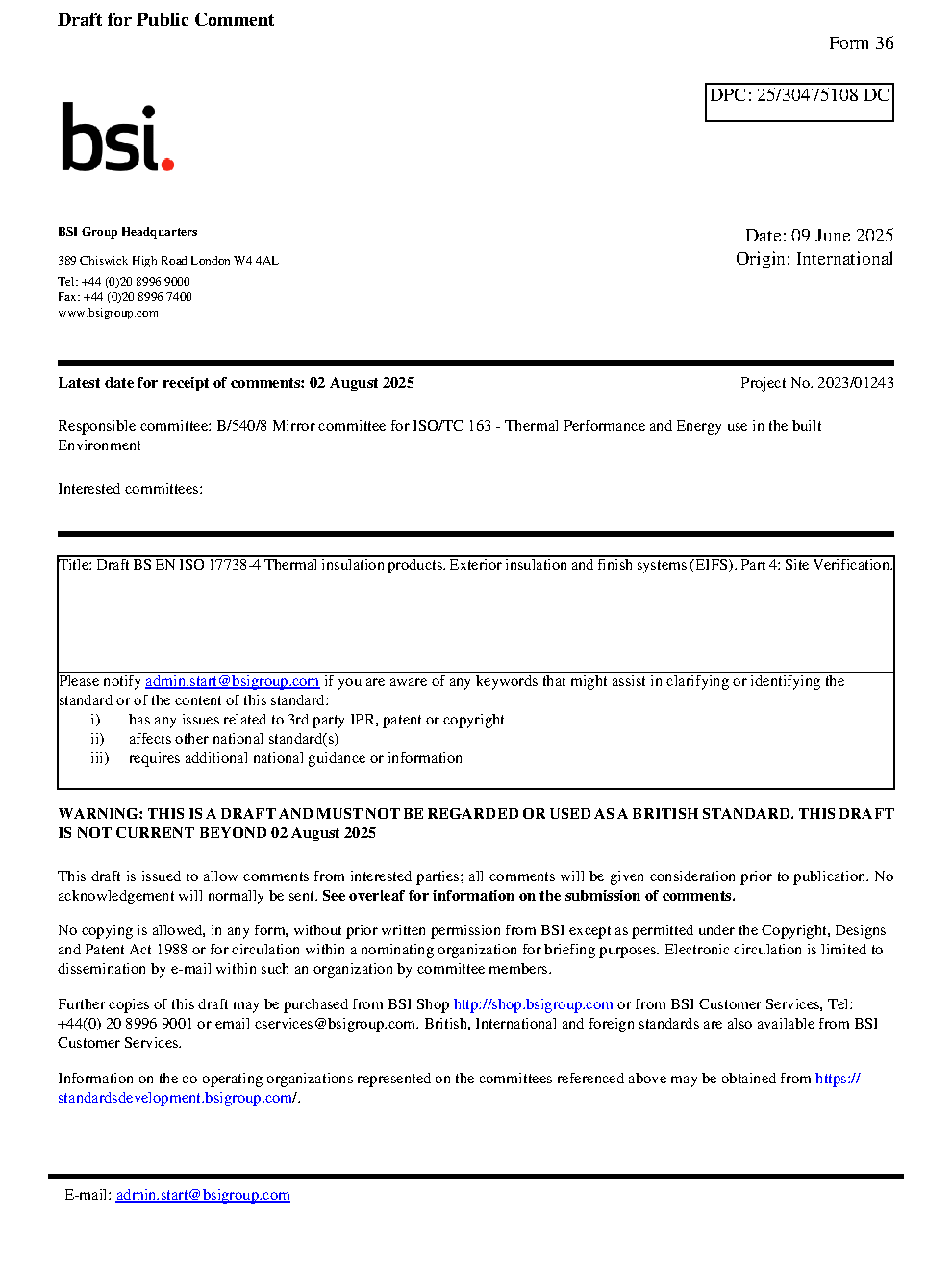 BS EN ISO 17738-4 Thermal insulation products. Exterior and finish systems (EIFS) Part 4: Site Verification