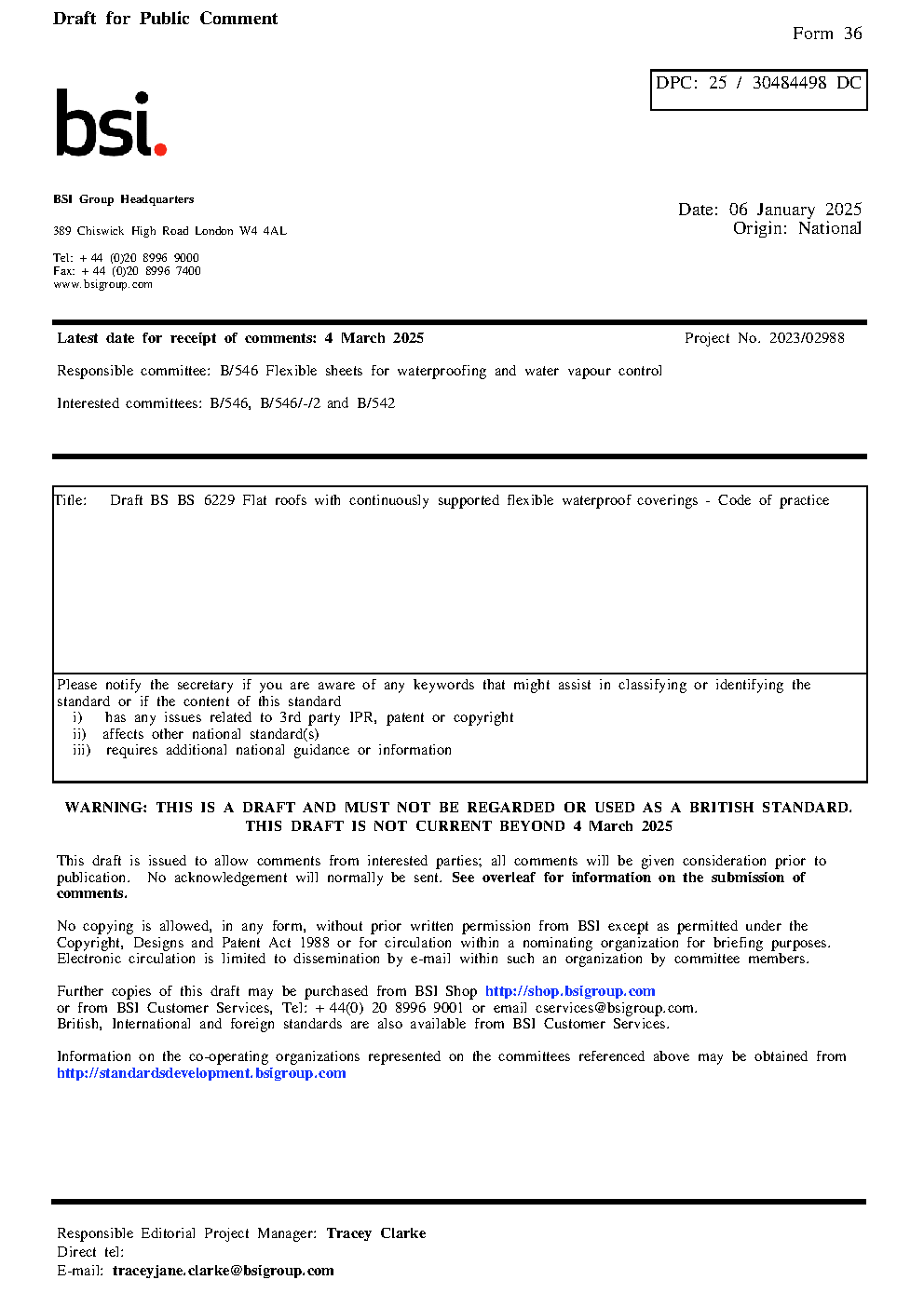 BS 6229 Flat roofs with continuously supported flexible waterproof coverings. Code of practice