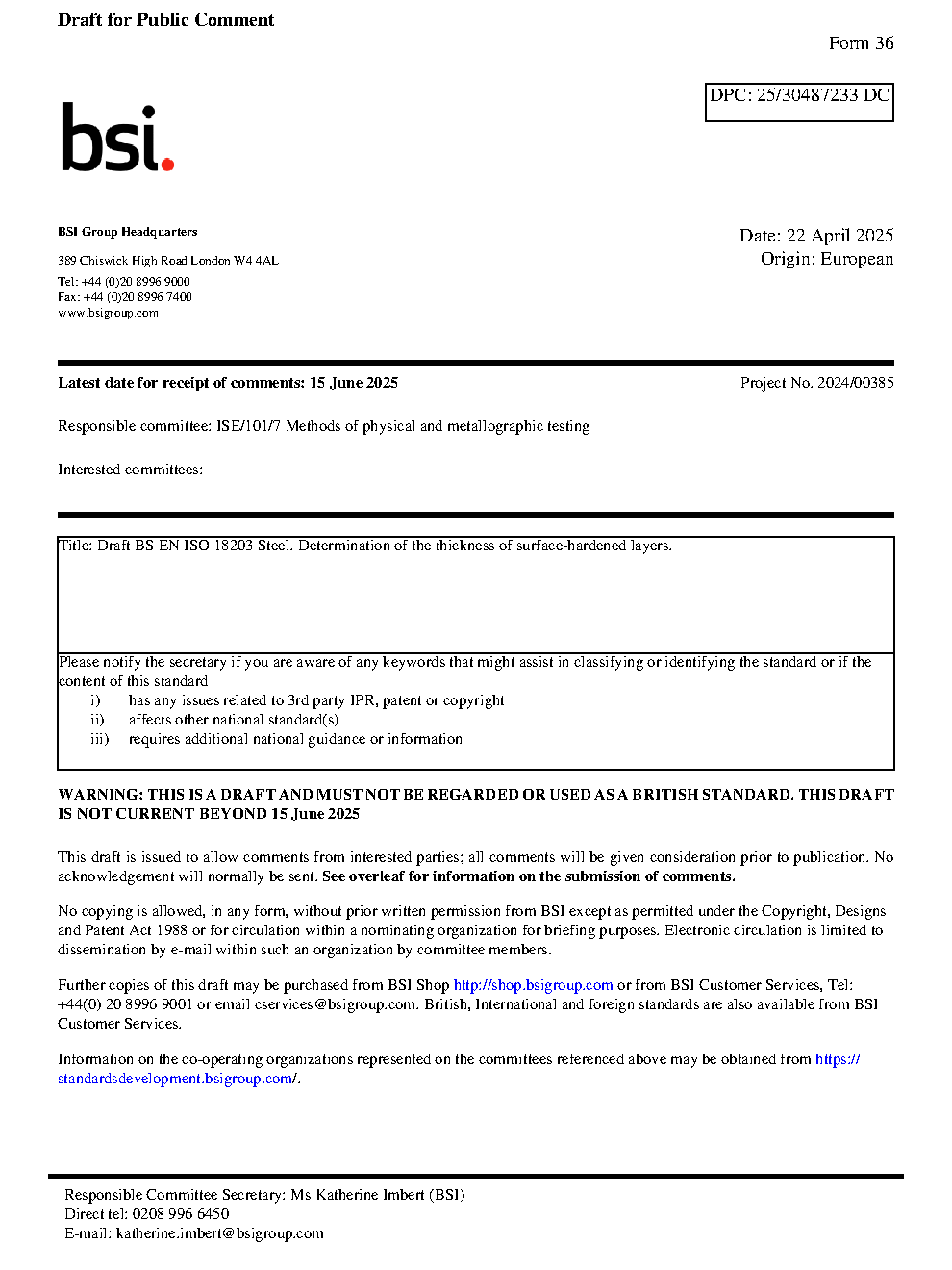 BS EN ISO 18203 Steel. Determination of the thickness of surface-hardened layers