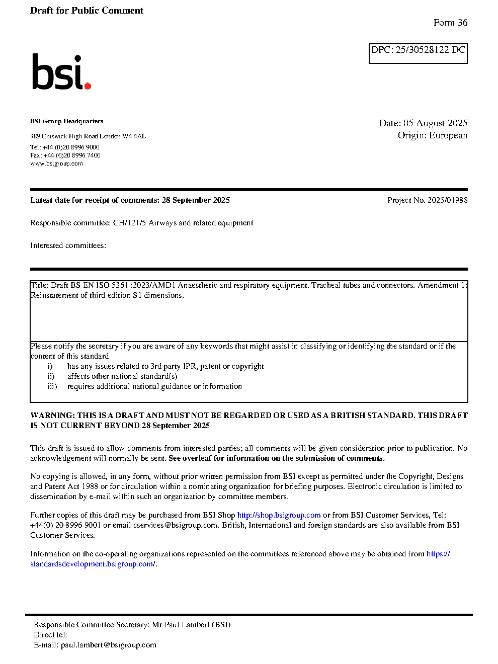 Draft standard