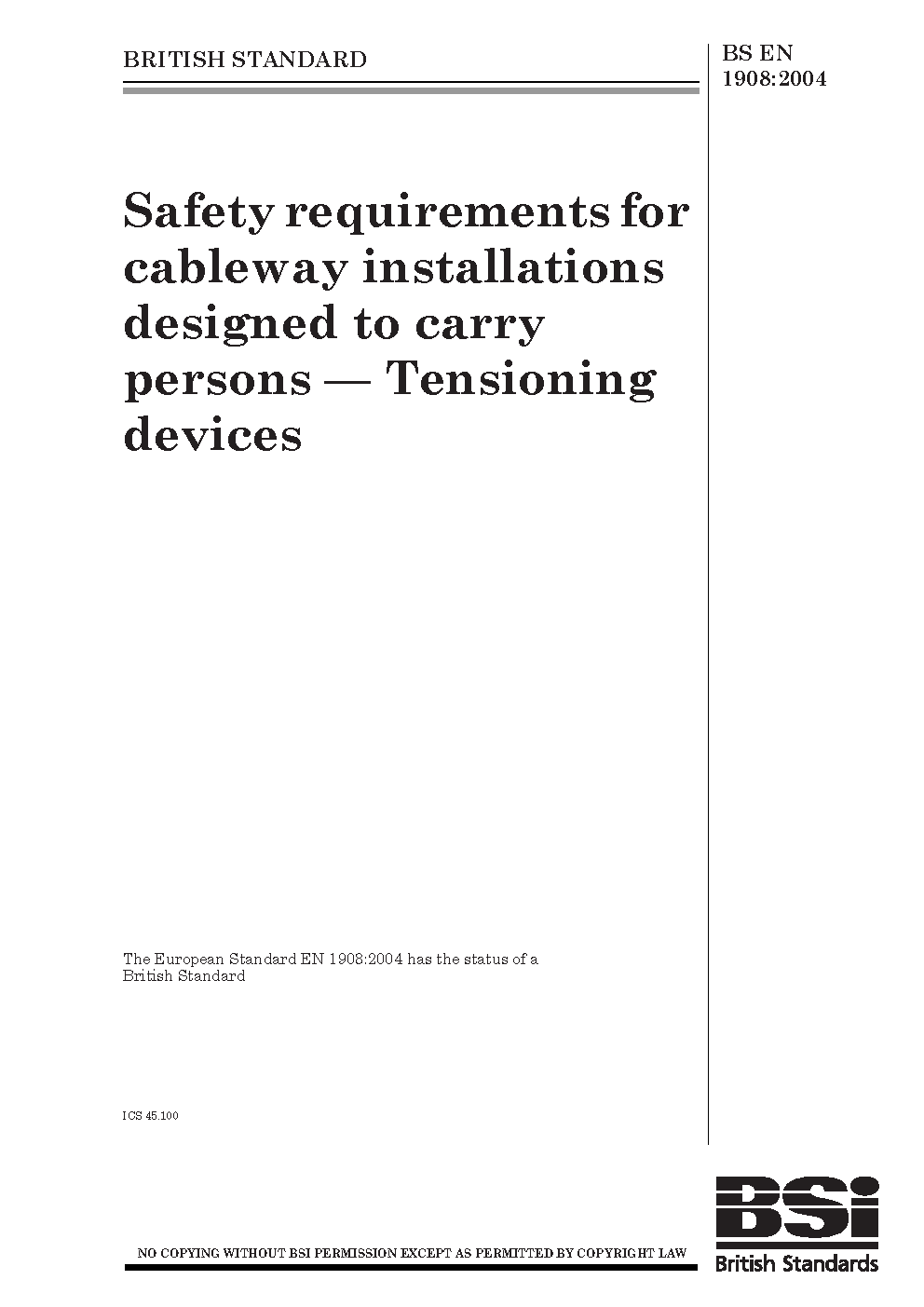 BS EN 1908. Safety requirements of cableway installations designed to carry persons. Tensioning devices