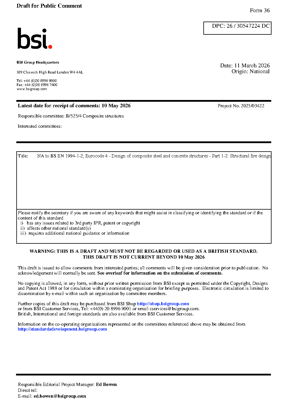 NA to BS EN 1994-1-2. Eurocode 4. Design of composite steel and concrete structures Structural fire design
