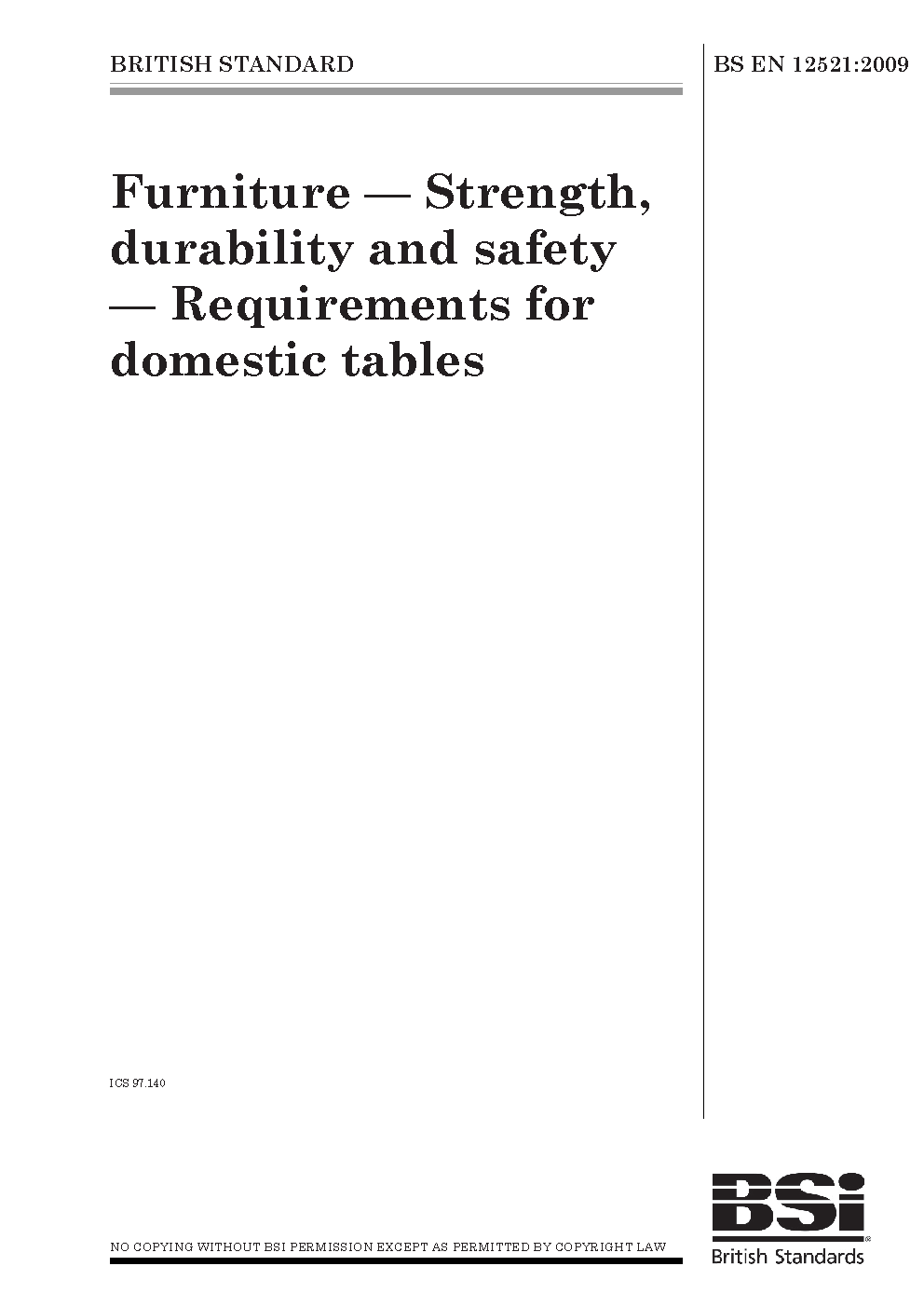 BS EN 12521:2023/A1. Furniture. Safety, strength and durability. Requirements for domestic tables