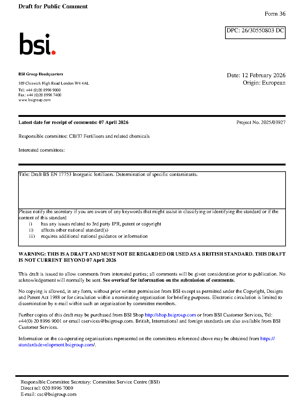 EN 17753 Inorganic fertilizers. Determination of specific contaminants