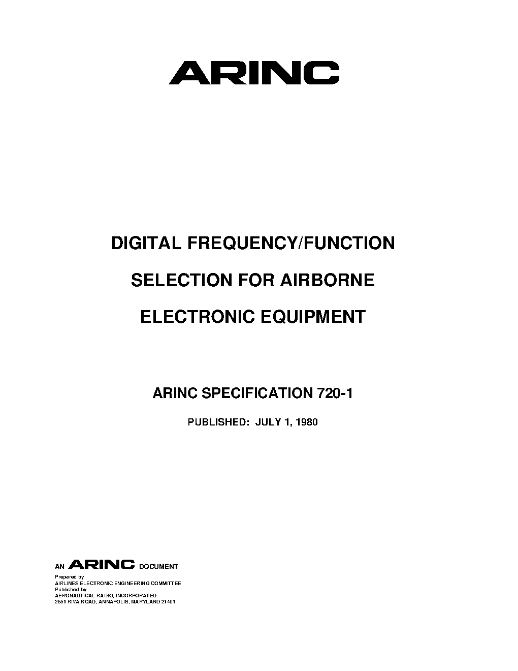ARINC Specification 720-1:1980
