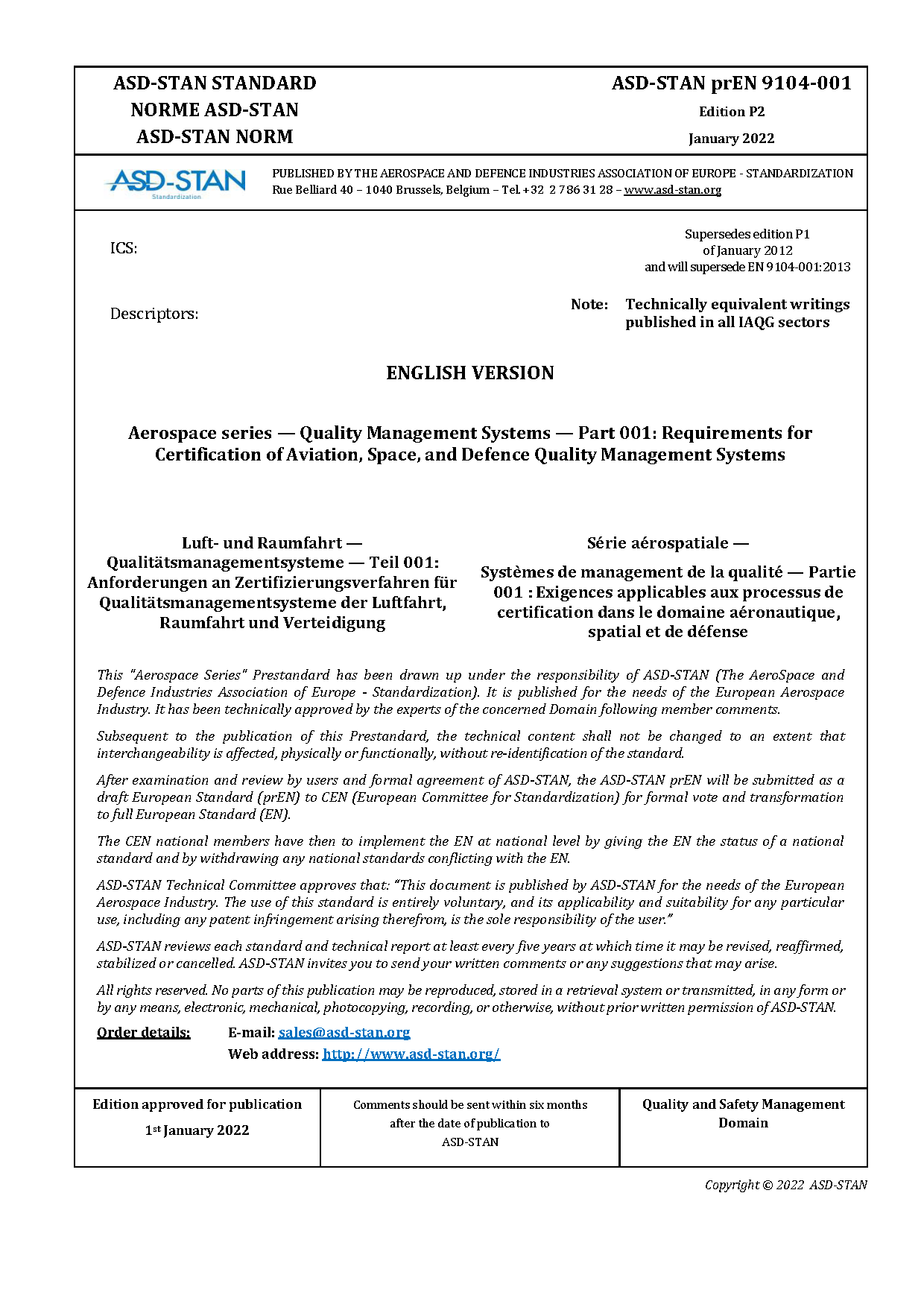 ASD-STAN prEN 9104-001 P2:2022