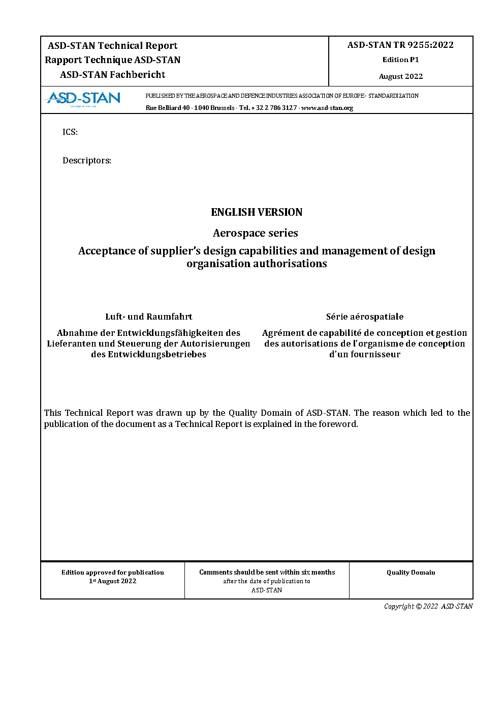 | Publisher | Association des industries aérospatiales et de défense de l'Europe - Normalisation |