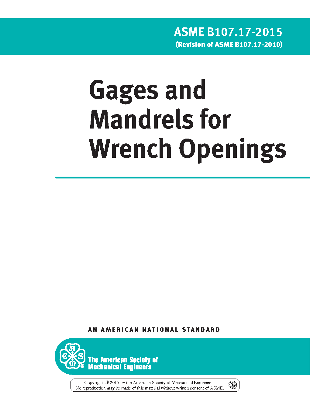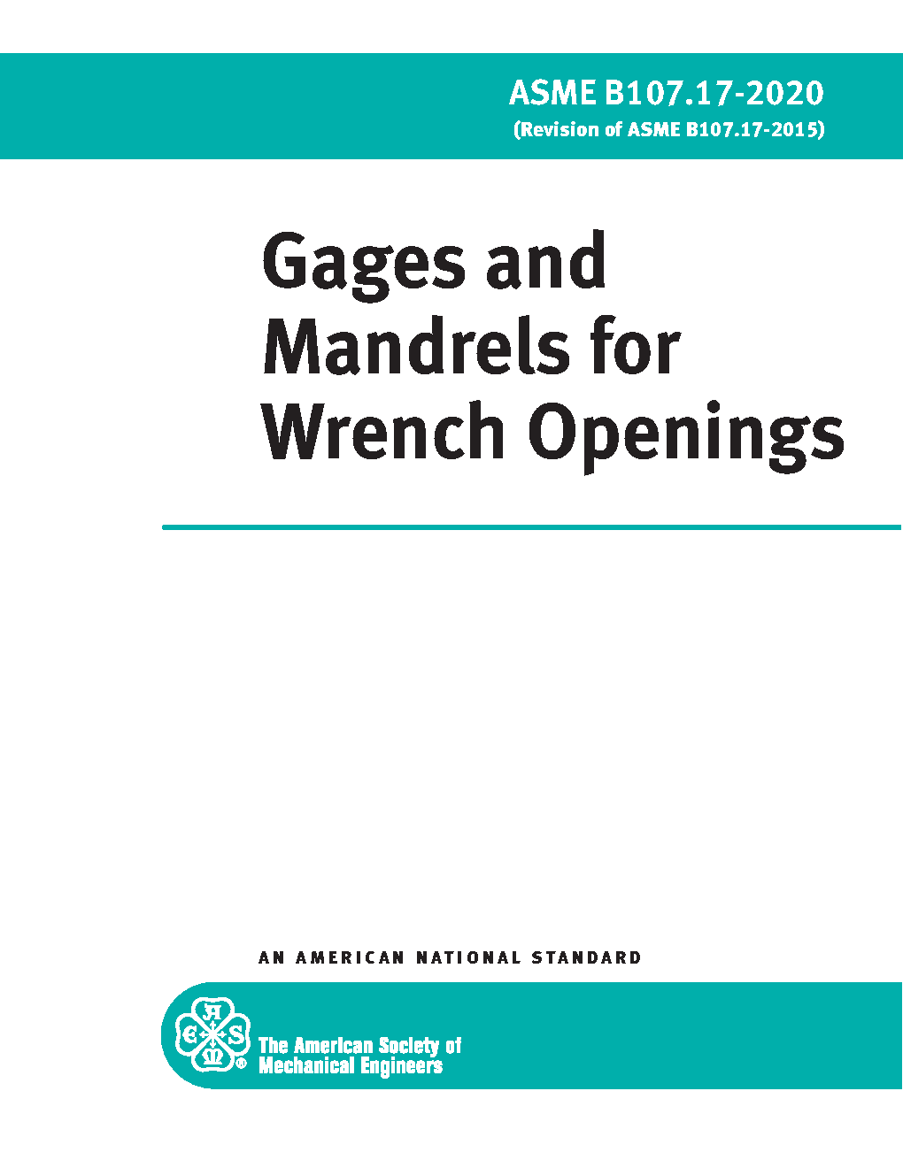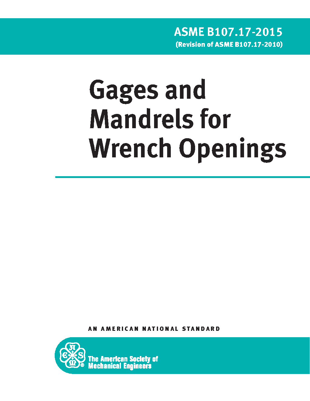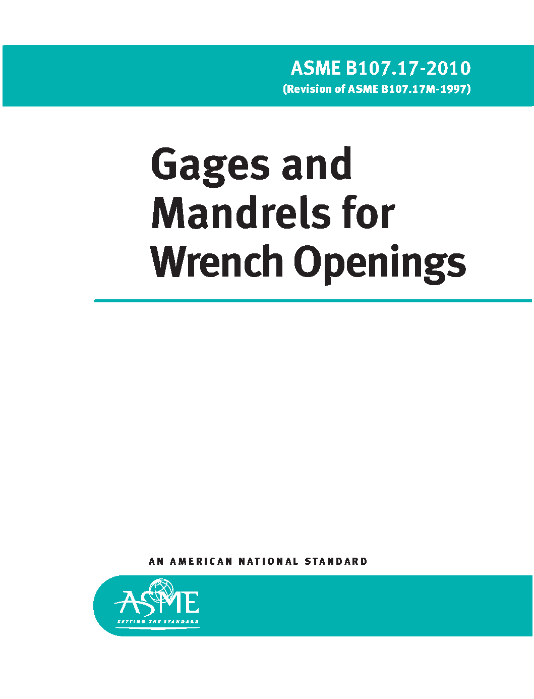 This Standard establishes final inspection gage sizes and test mandrel sizes for wrench openings, and spark plug wrench openings for inch and metric sizes. This Standard does not cover every available size, but only those most commonly manufactured.